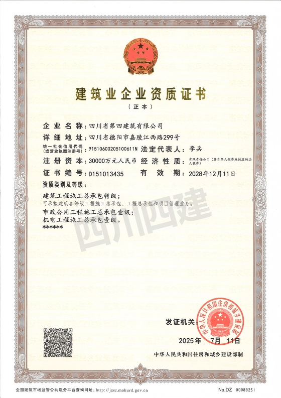 - 城市及道路照明工程专业承包壹级